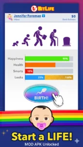 The BitLife Mod APK is a modified version of the game that unlocks:
